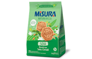 Un mix unico di soia e cereali per un frollino croccante e gustoso... con farina poco raffinata tipo 2 e soia italiana NO OGM!