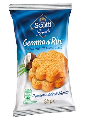 2 gustosi e delicati biscotti, con farina di riso e cocco, senza grassi vegetali idrogenati. Gusto ed energia!