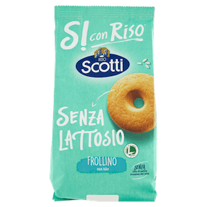 Biscotto frollino con riso, senza lattosio, senza proteine del latte e senza tracce.