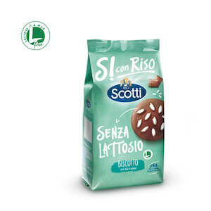 Biscotto rustico con riso, senza lattosio e proteine del latte certificati L free. Con farina di riso e olio di riso.